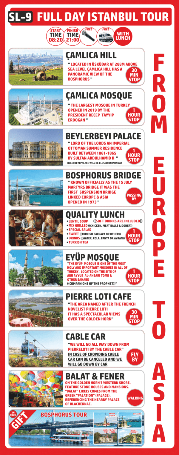 - We continue our Tour and stop at the famous Pierre Lotti Cafe, where you can enjoy a panoramic view of the Golden Horn.