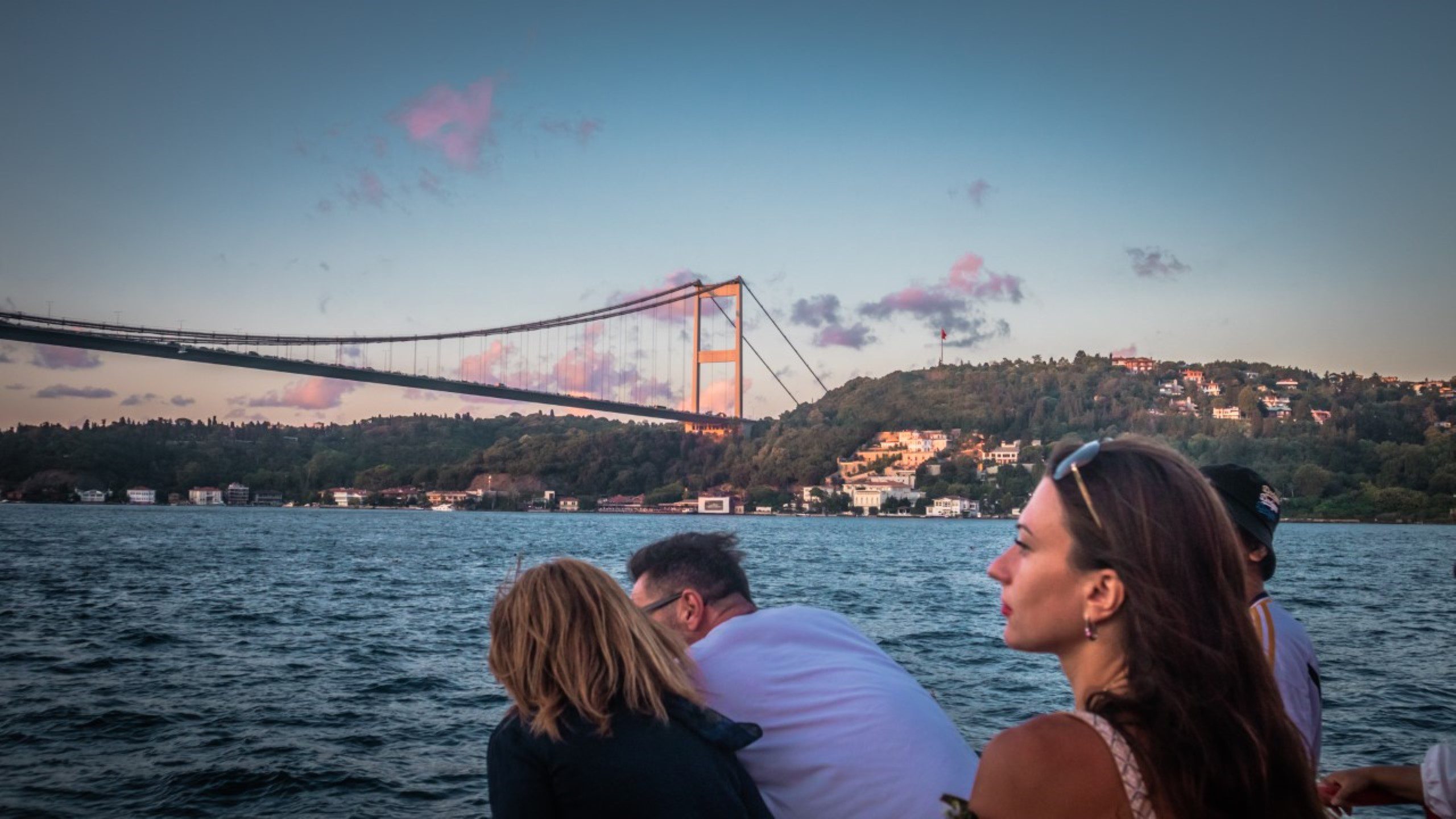 After meeting you at our office, we will take you to the boat and head straight to the Bosphorus. We depart along the European side of the Bosphorus, passing famous landmarks like Dolmabahçe Palace, Ortaköy Mosque, Çırağan Palace, and the Bosphorus Bridge. As you sail, enjoy fascinating broadcasted commentary onboard and access our Audio Guide Website for deeper insights, all while the golden sunset colors begin to transform the city skyline.